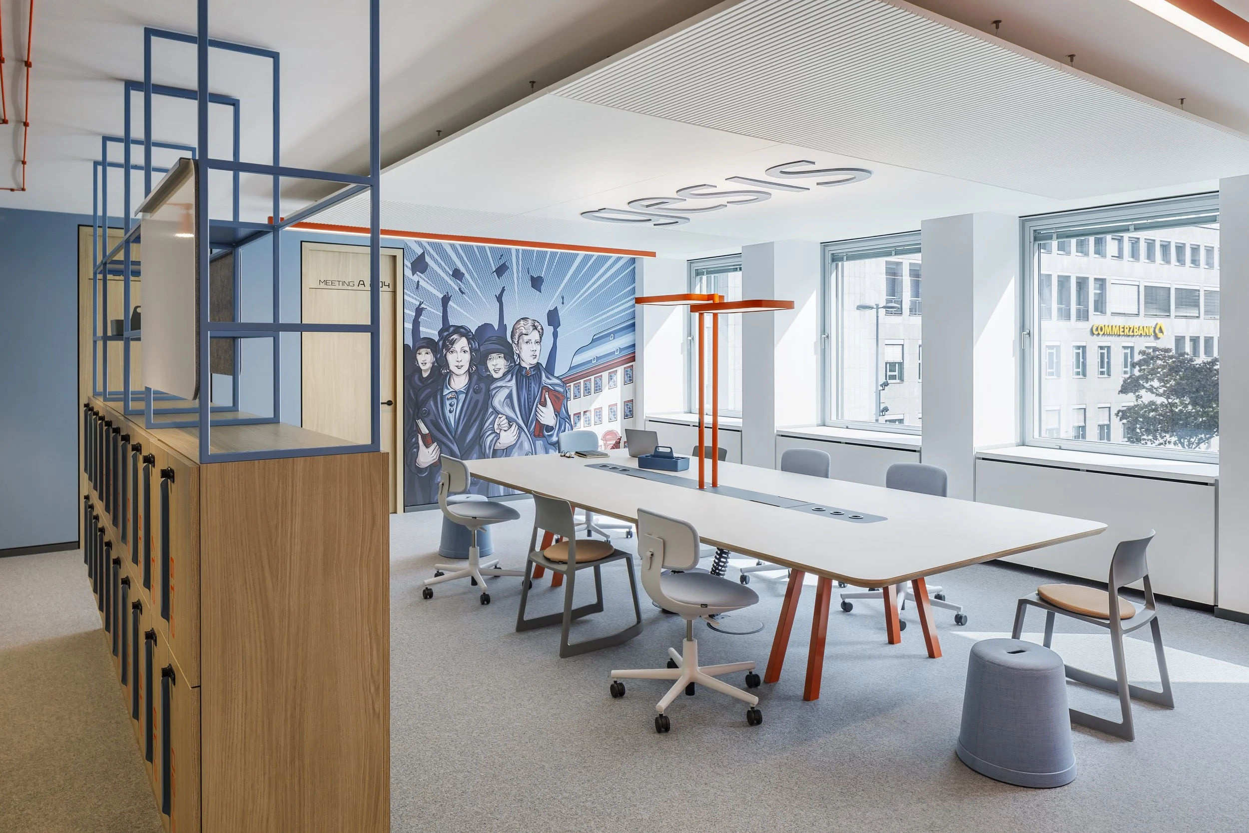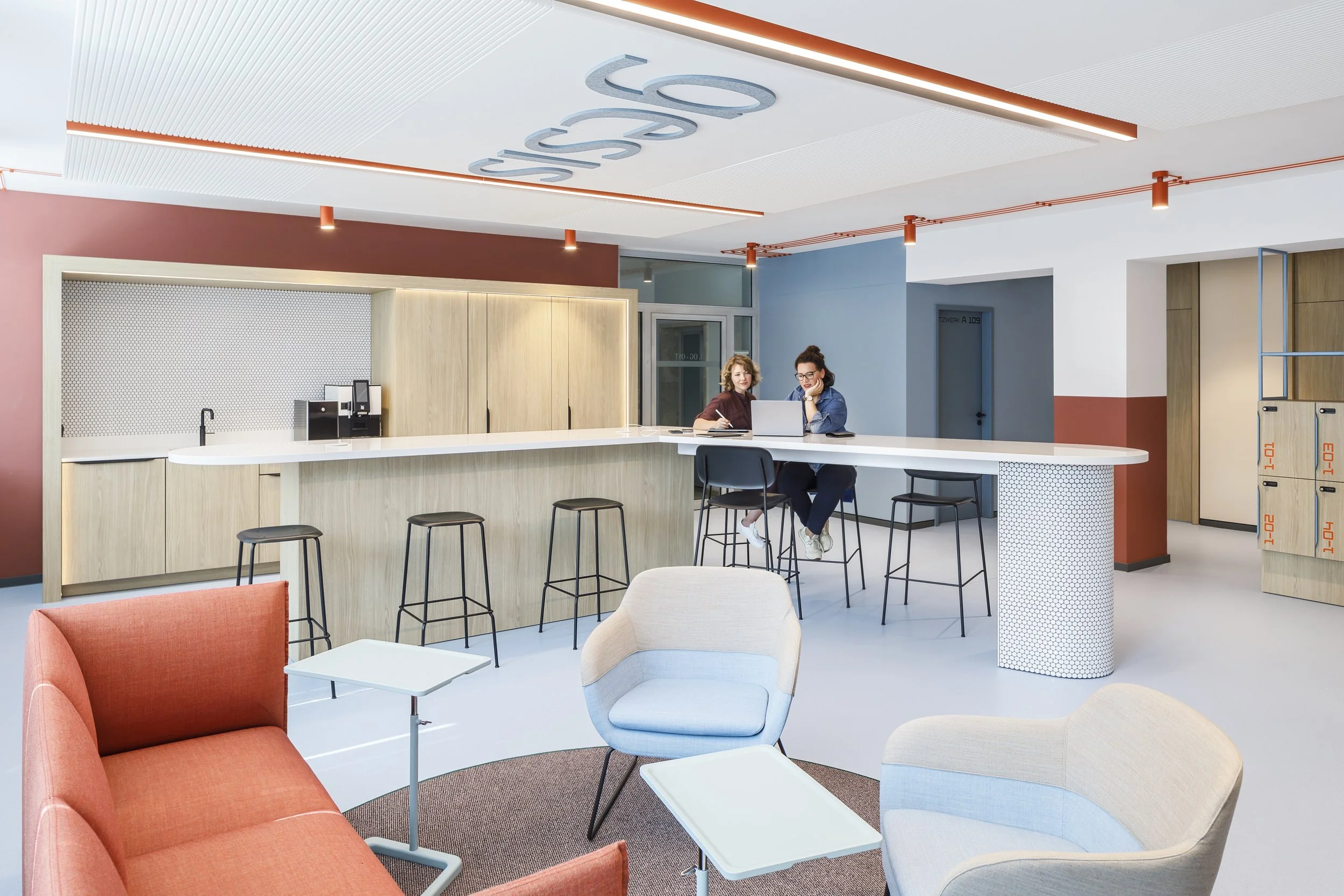 Auf dieser Basis entstanden differenzierte Flächenkonzepte mit unterschiedlichen Schwerpunkten: Bereiche für konzentriertes Arbeiten, Zonen für Zusammenarbeit sowie Räume für Austausch und Gemeinschaft.