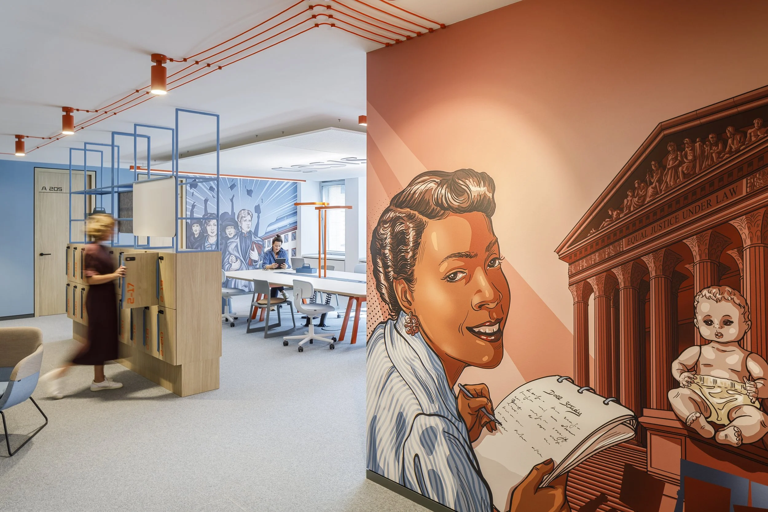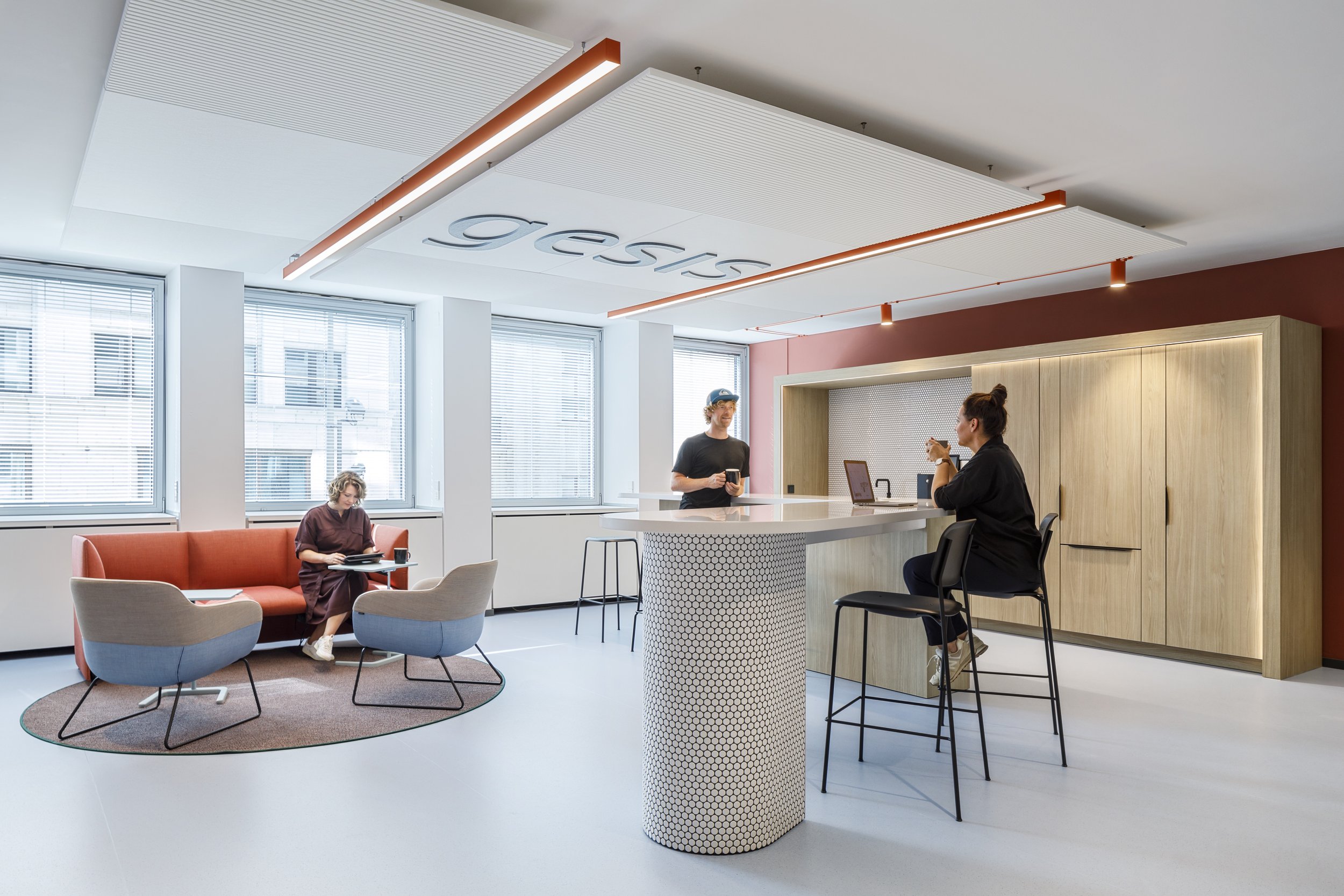 Was ich nicht erwartet habe ist wie schön, angenehm und funktional das realisiert werden konnte. Ihre Arbeit ist tatsächlich wunderbar! Nicht nur ästetisch schön, aber auch praktisch und angenehm. Schon in der erste Woche nach Einzug haben neue Gewohnheiten eingesetzt. Alle Teams treffen sich zu Mittagessen im zentralen Ort, viele Meetings werden auch aktiver gestalltet in der „Aula“, und Leute wissen schon viel mehr von einander und der Arbeit der Kolleg*innen.. “
