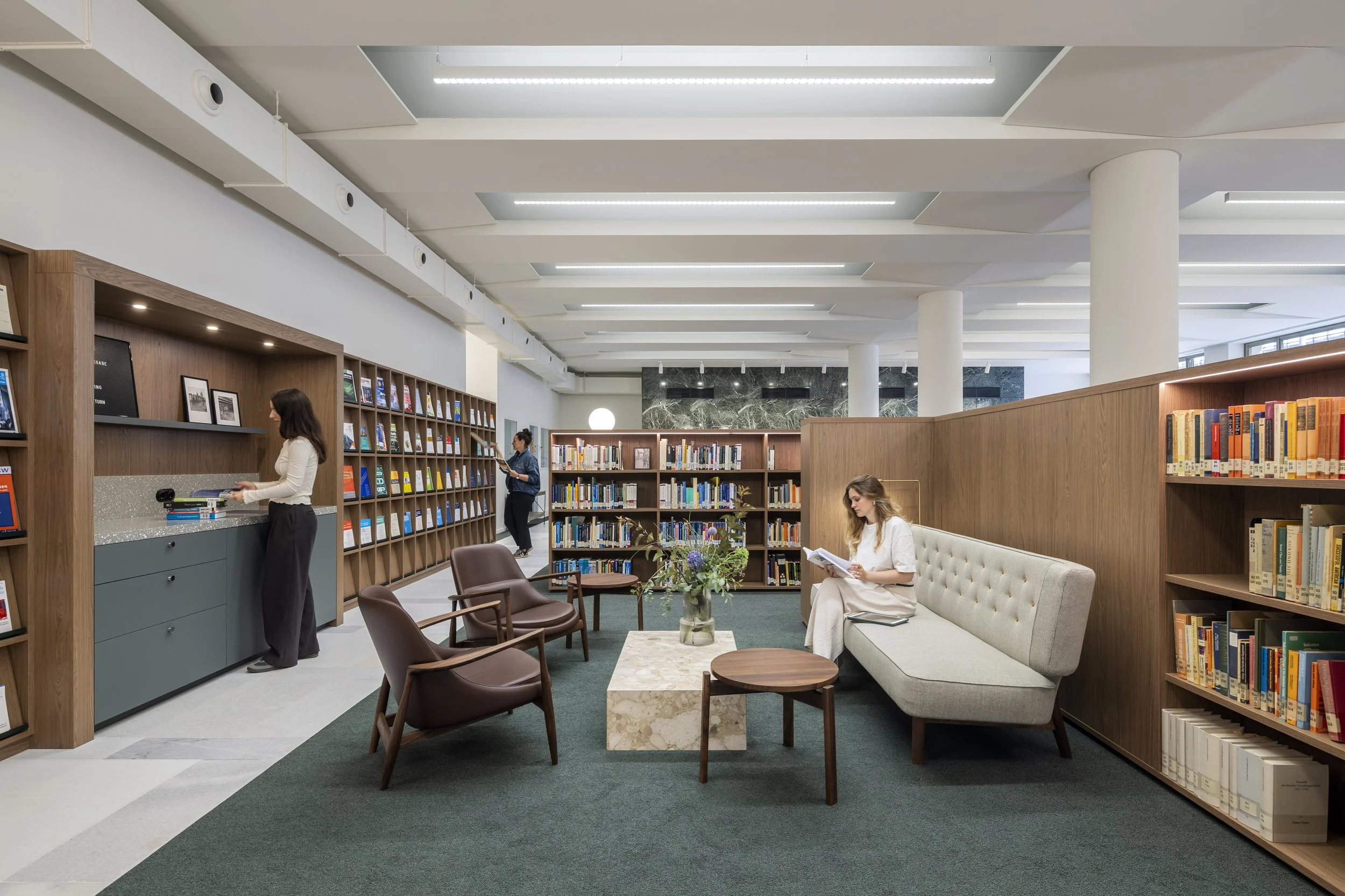 Für GESIS – eines der führenden europäischen Infrastruktureinrichtungen für die Sozialwissenschaften – durften wir die Räume am zentral gelegenen Kölner Standort neu denken und gestalten. Das Gebäude, ein Nachkriegsbau aus den 1950er Jahren und ehemaliger Sitz der Herstatt-Bank, befindet sich in unmittelbarer Nähe zum Hauptbahnhof und dem Kölner Dom. Im Rahmen des Projekts wurden Büroflächen, die Bibliothek sowie ein neues Café umfassend umgestaltet.